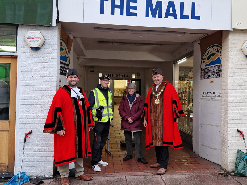 For the first few hours, the locals in town were not very engaging and it was hard to get smiles or strike up conversations. Nevertheless Geoff and I had a good chat with Ann from the Bexhill Evangelical Book Store, and we were able to get photos with the Mayor, the Deputy Mayor (and the Deputy’s son) with Ann. The Mayor mentioned that he spoke to Jesus Loves Sidley at their lights event the day before; they, like us are doing a good job.