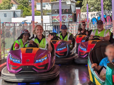 The sun shone on a warm and eventful day! We were out in full force with the gazebo in a prominent position. As the day progressed, we were surrounded with an exceptionally large crowd as we had a great view of the procession as it passed by. There was the usual banter and laughter as we mingled in the fairground amusements. Our hi-vis vests were easily noticed among the crowd as we filled countless bags of gathered litter. Geoff was given some free tickets, so Anne and Menaka braved the helter-skelter then they did battle with Geoff and Mike on the dodgems! (Anne had to have a lesson early on to find the accelerator pedal!) All much to the amusement of the local press photographer. As usual we received many good comments from the Bexhill Carnival organisers and the fairground staff. A good day...and above all, hundreds of people could not fail to see that Jesus does love Bexhill!